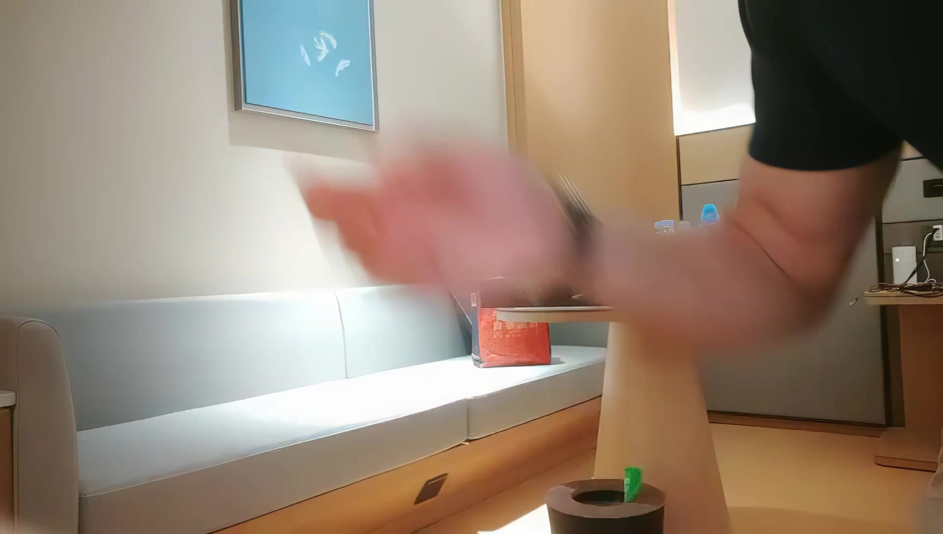 《专攻足疗按摩店》胖哥性欲旺盛逛了4家店边服务边聊谈成后就搞撸了2次干了2炮肏的太猛把套子留逼里了